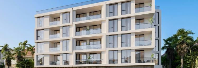 An eight-story building with 104 apartments