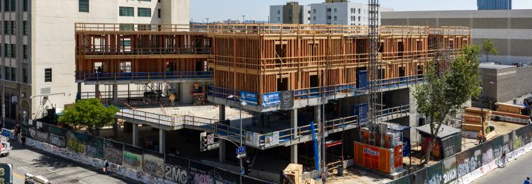 12-story supportive housing complex rising at 554 S. San Pedro St. in DTLA