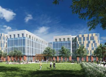 An eight-story building on Tower Drive and a 13-story tower on Olympic Boulevard