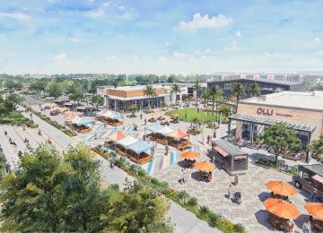 Plans show a new town center on Anaheim Street with a grocer and a Costco-like store