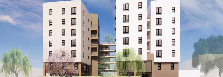 An eight-story building with 104 apartments