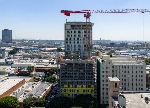 12-story supportive housing complex rising at 554 S. San Pedro St. in DTLA