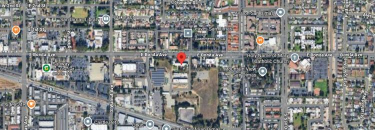 The project site is a large, empty lot near the A Line's San Dimas Station