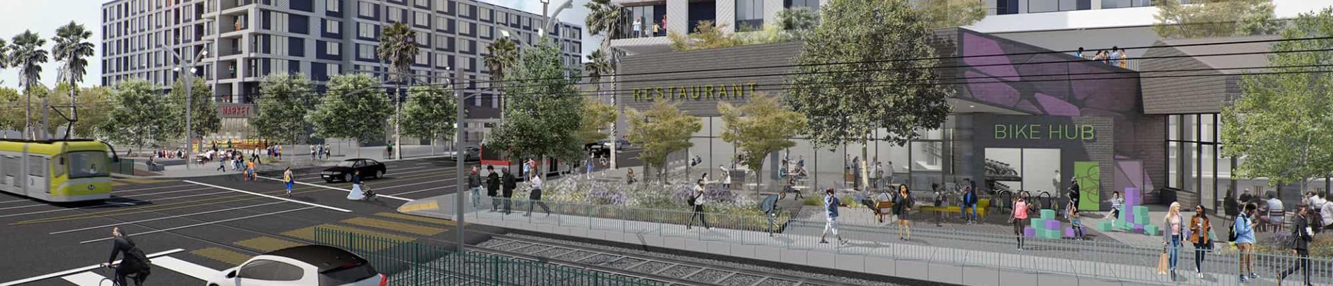 Offices, housing, and retail next to La Cienega/Jefferson Station