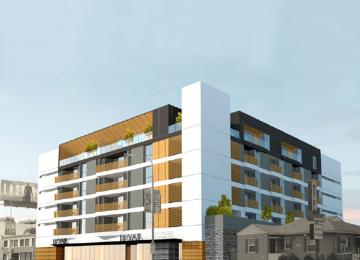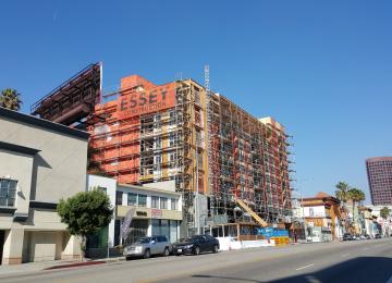 Six-story, 81-unit development under construction on Wilshire Boulevard.