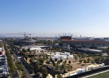 Exposition Park and the neighborhood which surrounds it is located south of Downtown Los Angeles and USC. The 160-acre park, owned by the State of California, is home to multiple cultural institutions and sporting venues including the Los Angeles Memorial Coliseum, Banc of California Stadium, the California Science Center, the Lucas Museum of Narrative Art, and the California African American Museum.