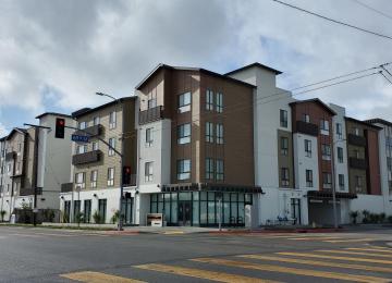 A five-story building with 87 residential units