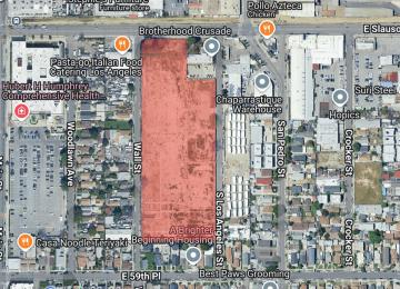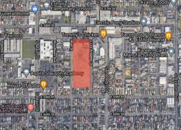 New plan for mixed-use project on empty site at 5867 S. Los Angeles Street