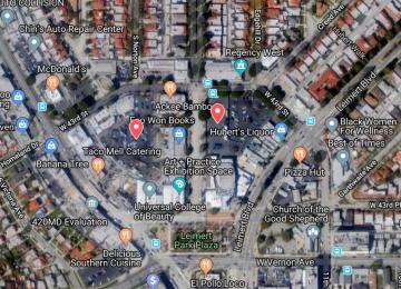 Kitty corner to the Baldwin Hills/Crenshaw Plaza mall
