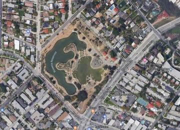 The 9.64-acre site is bounded by Maxwell Street, Ettrick Street, Rowena Avenue, and Hyperion Avenue