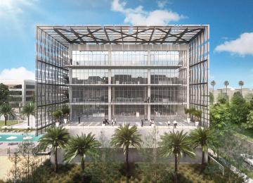 Playa Vista is a neighborhood located in the Westside of the City of Los Angeles, California, United States, north of LAX. Prior to the development of Playa Vista, the area was the headquarters of Hughes Aircraft Company from 1941 to 1985, and was the site of the construction of the Hughes H-4 Hercules "Spruce Goose" aircraft. The area began development in 2002 as a planned community with residential, commercial, and retail components. The community has become a choice address for businesses in technology, media and entertainment and, along with Santa Monica and Venice, has become known as Silicon Beach. (Source: Wikipedia)