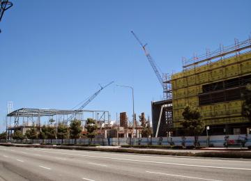 Playa Vista is a neighborhood located in the Westside of the City of Los Angeles, California, United States, north of LAX. Prior to the development of Playa Vista, the area was the headquarters of Hughes Aircraft Company from 1941 to 1985, and was the site of the construction of the Hughes H-4 Hercules "Spruce Goose" aircraft. The area began development in 2002 as a planned community with residential, commercial, and retail components. The community has become a choice address for businesses in technology, media and entertainment and, along with Santa Monica and Venice, has become known as Silicon Beach. (Source: Wikipedia)