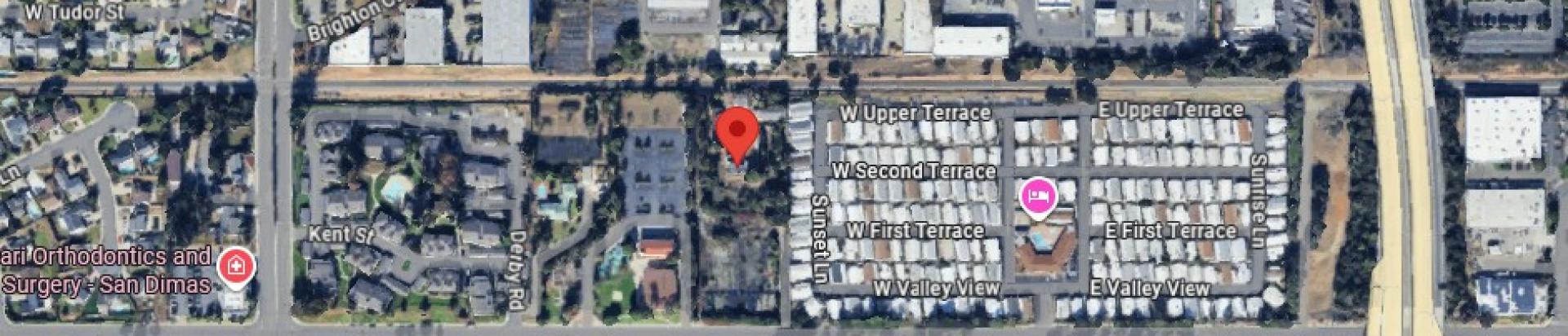 The project site is a large, empty lot near the A Line's San Dimas Station