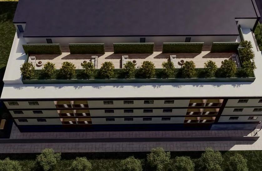 Artdesign Company is designing the contemporary low-rise building, according to plans included with the Planning Commission presentation. Renderings show the building would incorporate a rooftop deck.