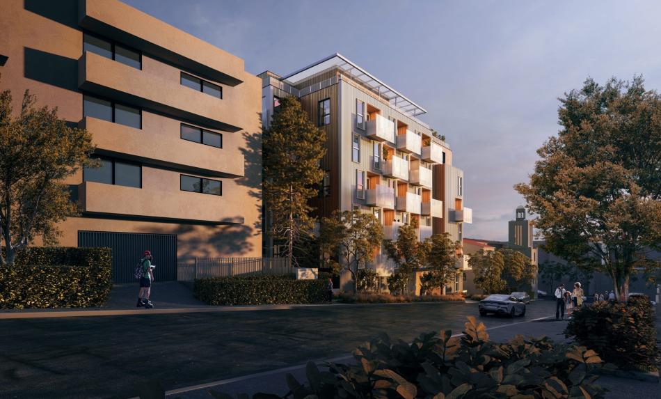Located at 910 N. Wetherly Drive, the project will eventually consist of a seven-story building featuring 89 studio, one-, two-, and three-bedroom units atop parking for 66 vehicles.