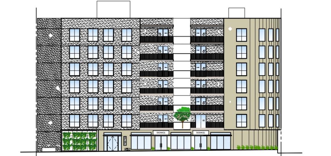 The project, which would rise from a site at 2101 W. 8th Street and 751-757 S. Alvarado Street, calls for clearing the existing parking lot to allow the construction of a seven-story building containing 114 one-bedroom apartments above approximately 5,172 square feet of ground-floor retail space and parking for six vehicles.