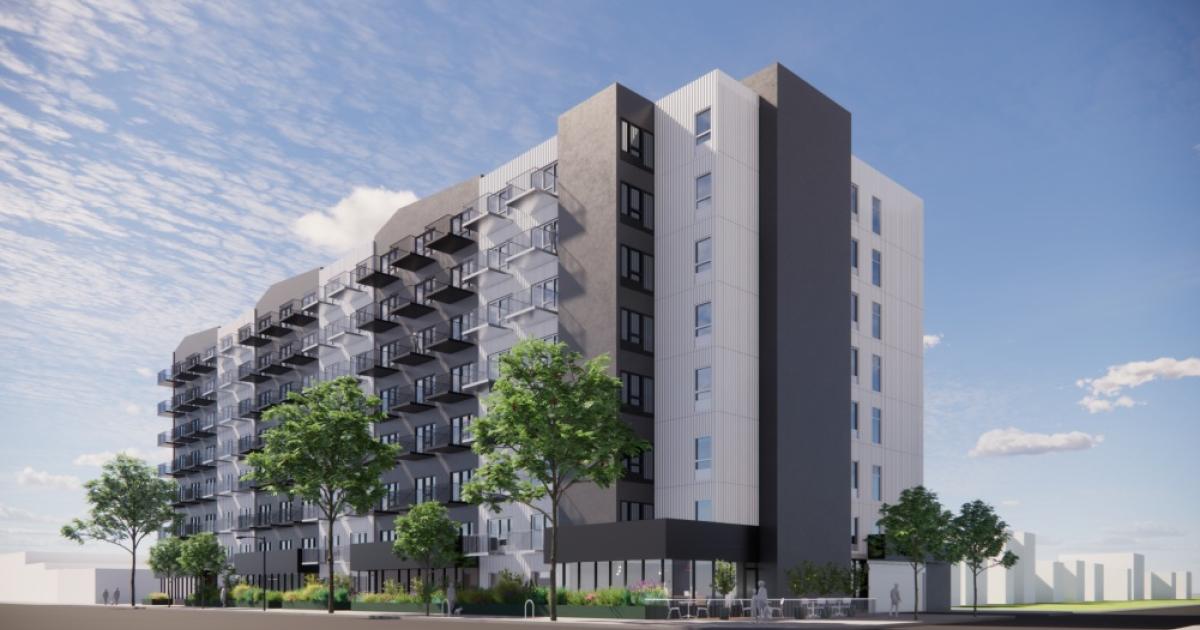 Thrive Living, which now controls the site at 11001-11021 W. Pico Boulevard, is coupling the vacant Norm's lot with an adjacent property to the west to propose the construction of a new eight-story building featuring 207 one-, two-, and three-bedroom apartments above 2,410 square feet of ground-floor commercial space and a three-level, 156-car garage.
