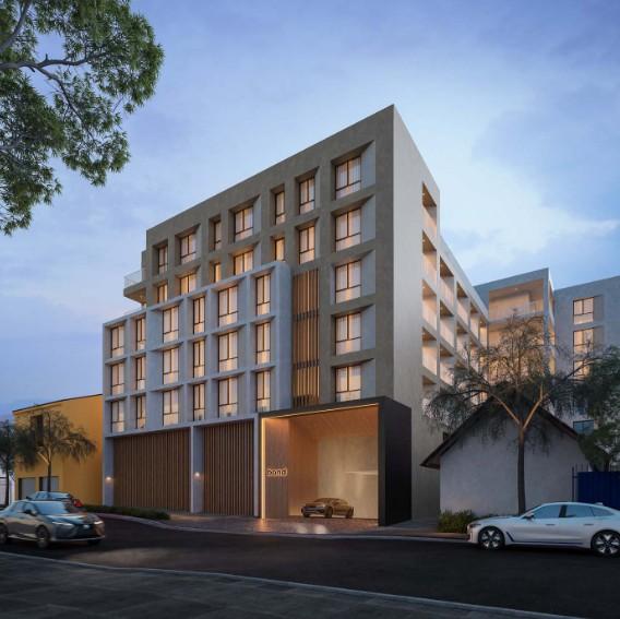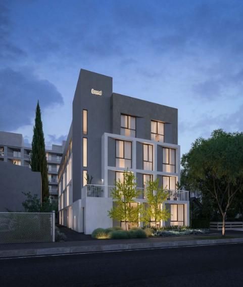 The Bond Hotel & Residences, which would rise from an amorphous property with frontage between Orange Grove Avenue and Ogden Drive, was previously slated to consist of a 45-roomhotel with 95 rental apartments and various commercial uses. New plans presented to the West Hollywood Planning Commission's Design Review Subcommittee now show an increased emphasis on housing for the project, with plans calling for a series of seven-story structures featuring a 45-hotel room accompanied by 126 studio, one-, two-, and three-bedroom apartments with 4,473 square feet of ground-floor restaurant space and a two-level, 104-car parking garage.