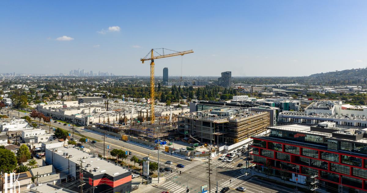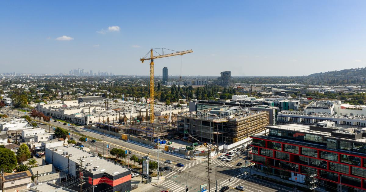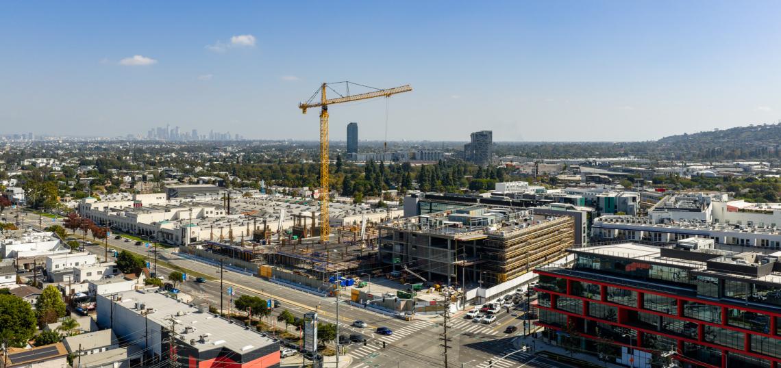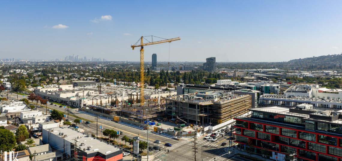 Located on the Los Angeles - Culver City border at 8888 Venice Boulevard, the project will create a total of 536,000 square feet of offices and production space with subterranean parking for 1,200 vehicles. Construction has reached its full height on the Culver City side of the property, fronting National Boulevard, where concrete and rebar continue to rise for the larger Los Angeles building to the east.