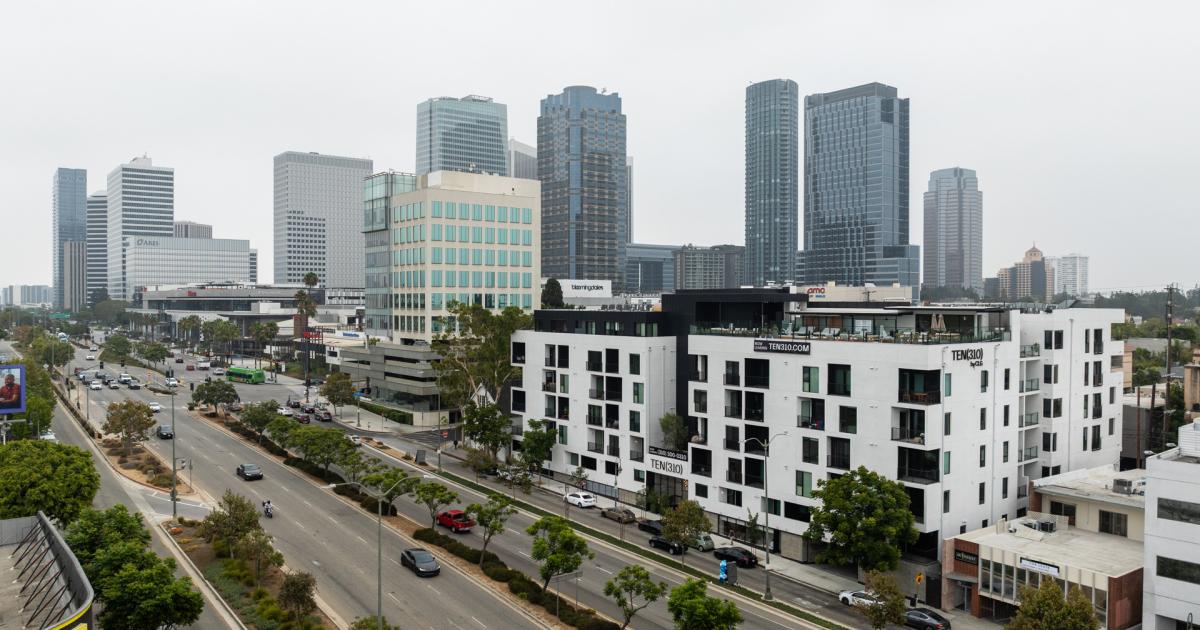 The Ten310 apartments, named for the project address at 10310 Santa Monica Boulevard, is a six-story building featuring 91 one-, two-, and three-bedroom dwellings above parking for 68 vehicles.