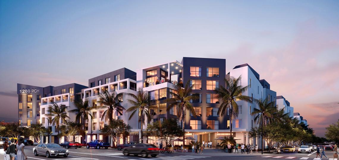VTBS Architects is designing the project, named 1280 PCH for its address, which is shown in plans as a contemporary low-rise structure organized around two central courtyards. Plans also call for a small roof terrace overlooking Pacific Coast Highway.