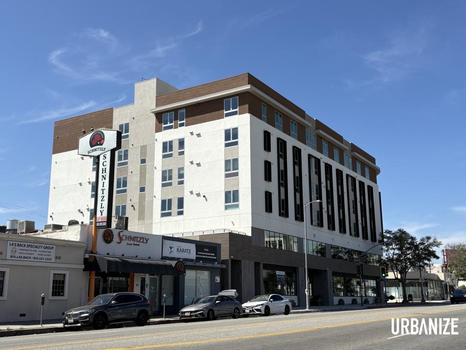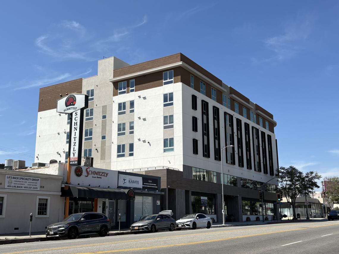 Developed by Cornerstone Housing for Adults with Disabilities, the new six-story building occupies a corner lot located at 9224 W. Pico Boulevard. The podium-type building includes 64 studio, one-, and two-bedroom apartments above 9,400 square feet of ground-floor commercial space and a 55-car basement garage.