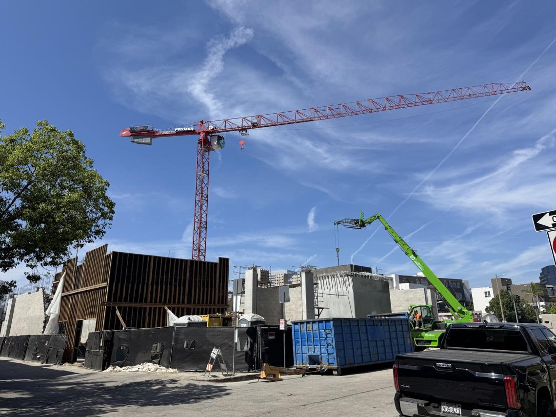 Another tower crane has arrived at Mid-Wilshire's notorious Fairfax Asterisk, as construction goes vertical for a mixed-use apartment complex.