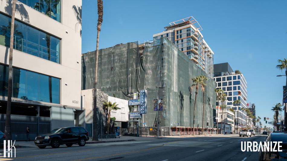 A year-and-a-half since our last updated in Hollywood, framing is complete for a new mixed-use apartment complex across the street from Emerson College's west coast campus.