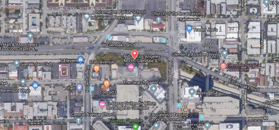 The filing for the proposed adaptive reuse project also references an earlier plan to build a new hotel tower on an adjacent site at 135-190 Glenoaks. In 2019, the Glendale City Council reviewed proposals from the Kam Sang Company to build a 25-story building above a portion of the Verdugo Wash featuring 226 guest rooms, 7,500 square feet of restaurant space, 20,000 square feet of ballrooms and meeting spaces, and approximately 18,000 square feet of office space.