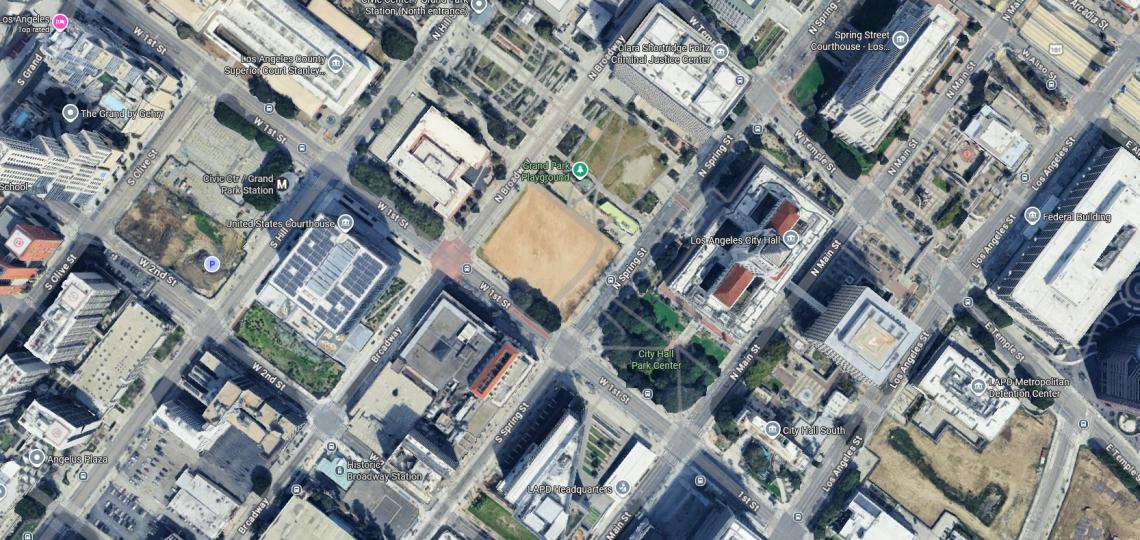 A presentation given to the Downtown Los Angeles Neighborhood Council offers a look at plans to transform an empty lot across the street from City Hall into green space before the 2026 World Cup and the 2028 Summer Olympics.