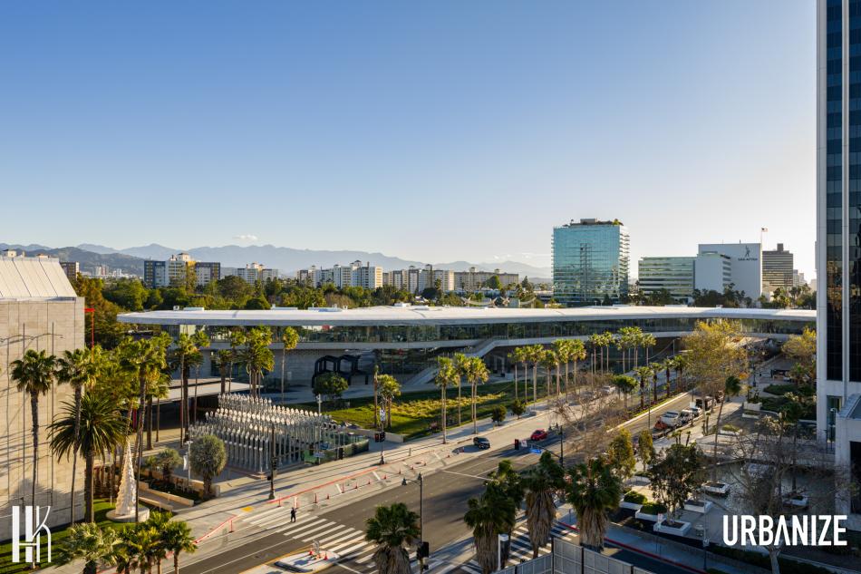 The project, which broke ground in 2020, replaced the museum's original buildings designed by William Pereira with a new two-story structure  that spans across Wilshire Boulevard. The interior of the more than $700-million building includes gallery space, a new theater, classrooms, restaurant space, a shop, event space, and other back-of house functions. The new building is surrounding by a plaza adorned with artwork, adding to existing outdoor offerings such as "Urban Light" and "Levitated Mass."