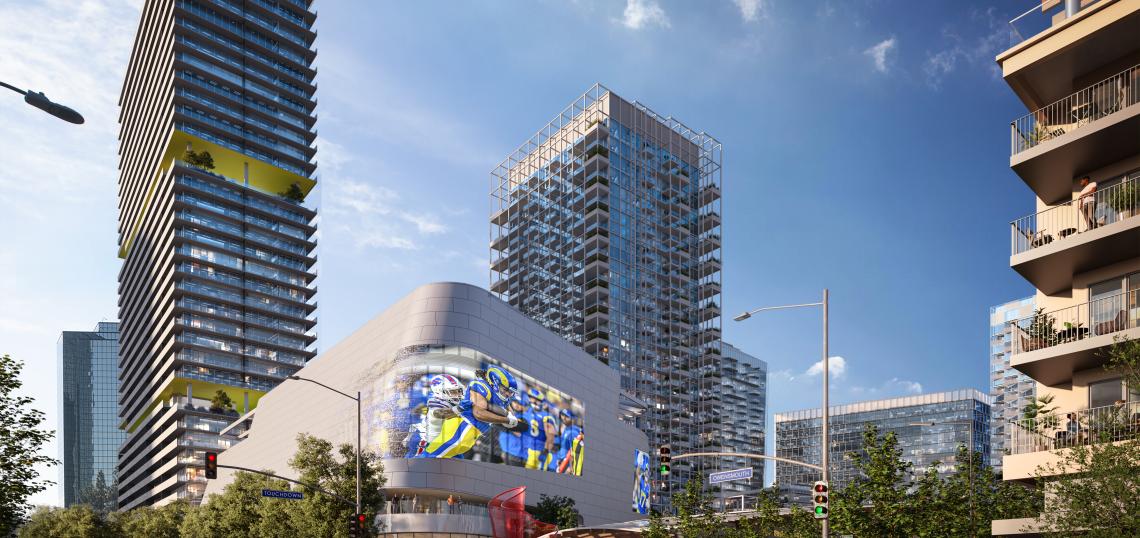 The project would be the second transformative development pitched by Kroenke, and anchored by the Rams. Far south in Inglewood, the space that was once home to the Hollywood Park race track is being gradually redeveloped with housing, offices, and commercial uses surrounding SoFi Stadium, which is home to both the Rams and Chargers.