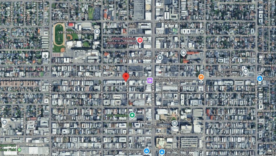 A commercial building one block off of Van Nuys Boulevard is set for redevelopment, per an application submitted yesterday to the Los Angeles Department of City Planning.
