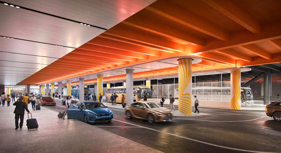 The section underneath Pico will not be ignored as part of the project - this stretch of road will serve as the primary vehicular entrance to the center moving forward. Renderings show a well-lit space with new drop-off and pick-up zones for both buses and private automobiles.