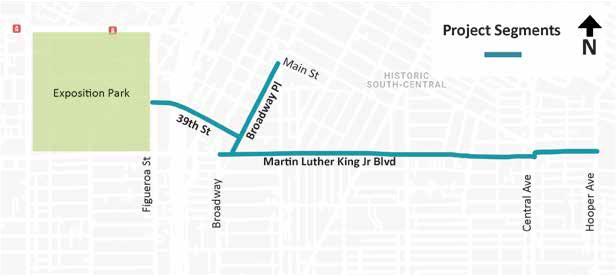 • 0.37 mile segment of 39th Street, between Broadway Place and Figueroa Street.