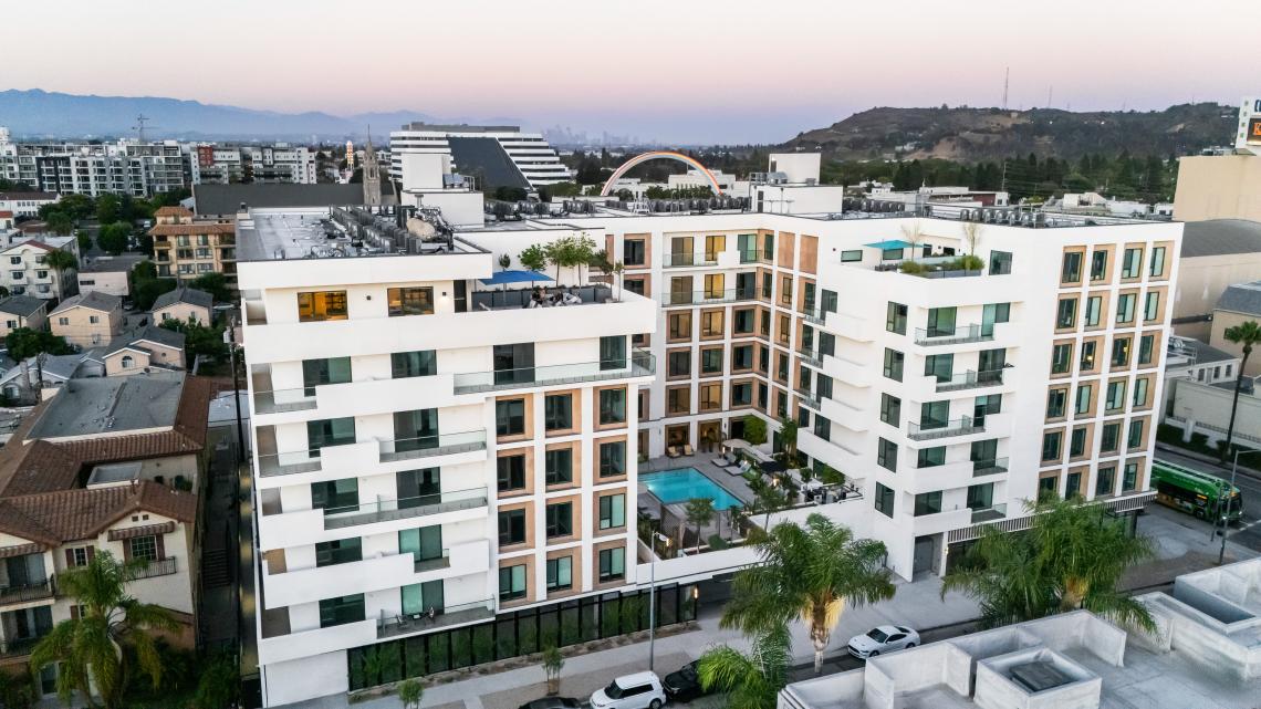 In Palms, construction is complete for Lana, a mixed-use apartment building located across street from Sony Pictures Studios.