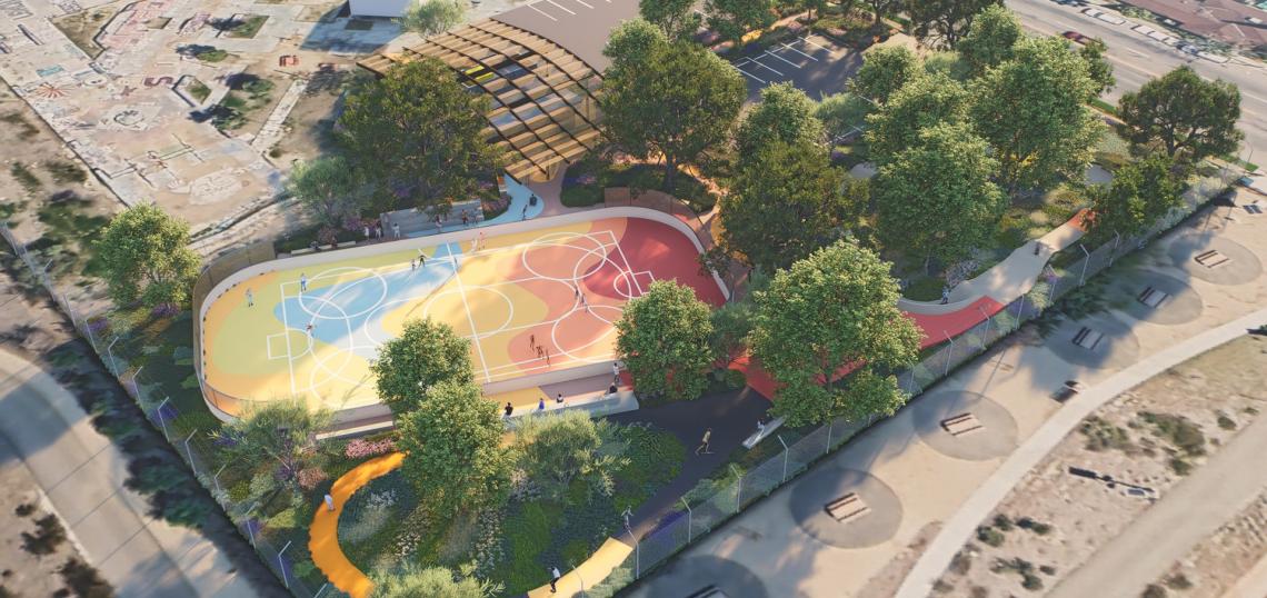 "The site design is inspired by curvilinear skating movements, the proximity to the Tujunga Wash, and the scenic peaks and valleys of the Verdugo and San Gabriel Mountains visible from the site," reads a staff report. "Organic forms within the proposed circulation paths address safety by separating active skating from pedestrian movement."