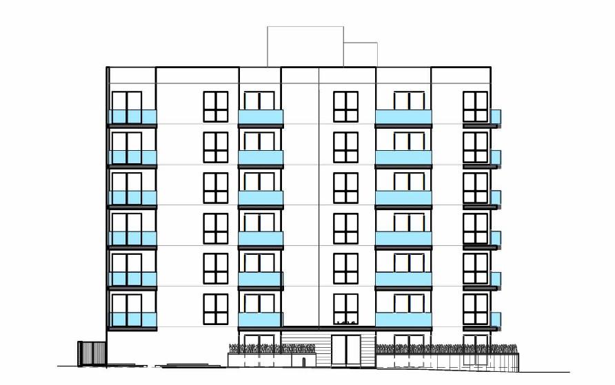 Sam Ghanouni is designing the project, which is depicted in an elevation as a contemporary podium-type building.