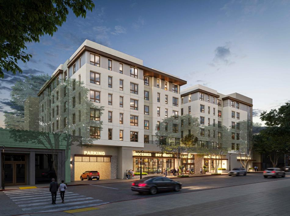 The Downtown Santa Monica project from EAH Housing would rise at the former site of Parking Structure 3 near the Third Street Promenade. Plans call for the construction of a six-story building featuring 122 studio, one-, two-, and three-bedroom apartments with a 20,000-square-foot ground-floor market and a two-level subterranean parking garage. The apartments are to be reserved for individuals and families earning at or below 30 and 80 percent of the area median income level.