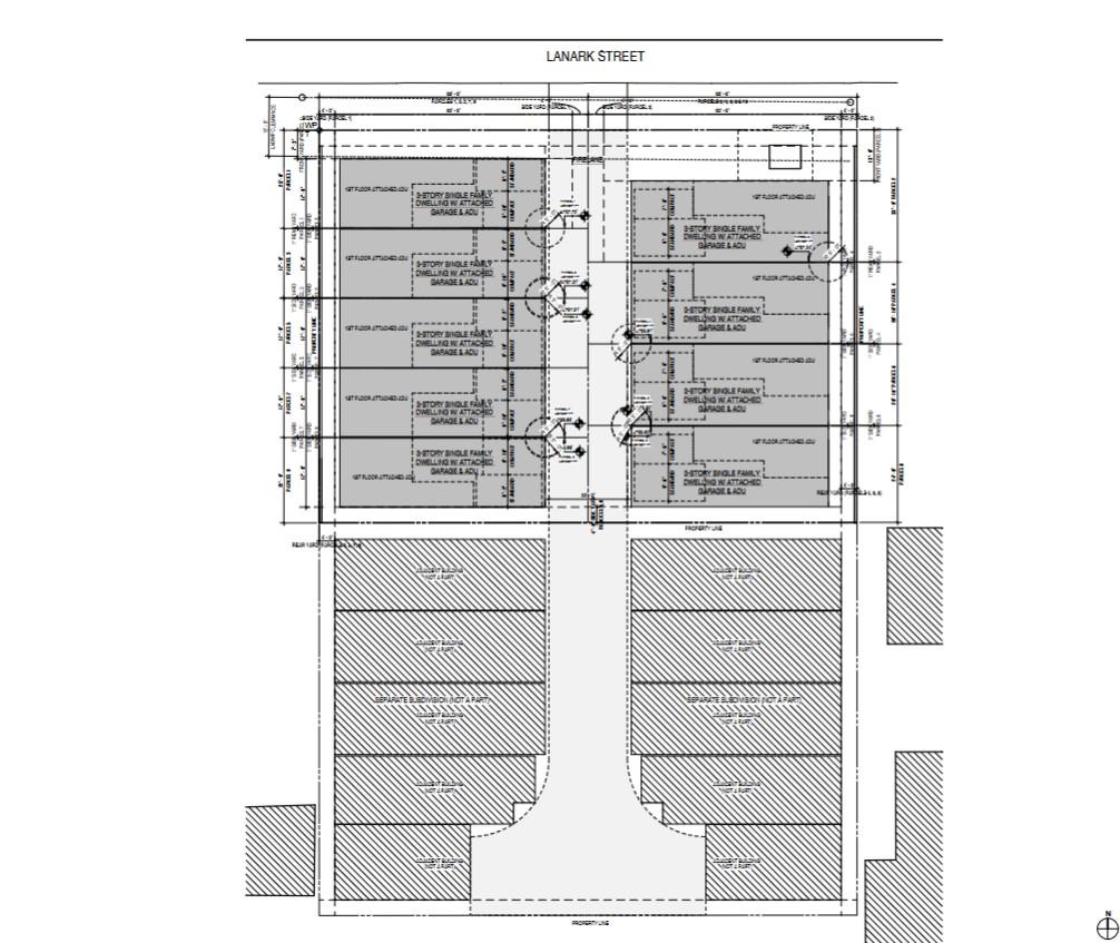 The property, located at 18838 W. Lanark Street, consists of two lots, each under separate applications. The front lot, which faces Lanark Street, is to be subdivided into nine parcels, each of which would include a single-family home with an accessory dwelling units.