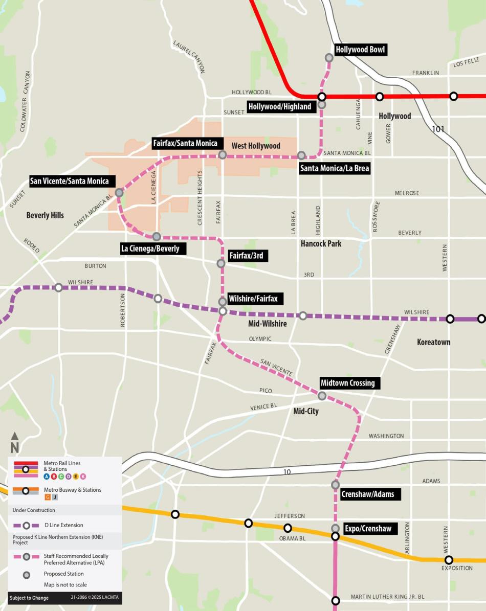 The route of the K Line extension to HollywoodMetro