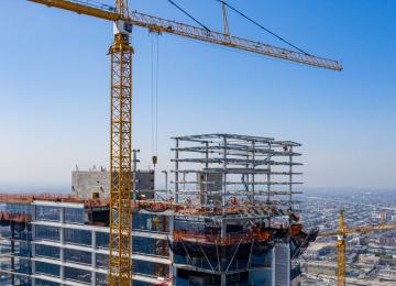 Progress is visible at the mixed-use project's Park Hyatt-branded hotel and condo tower.
