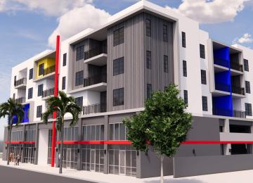 Plans call for a five-story, 65-unit building next to the Rubio Wash