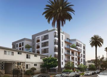 Six-story, 74-unit apartment complex rising at 139 Occidental