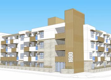 Four-story, 77-unit apartment building on the rise at 1600 E Venice Boulevard