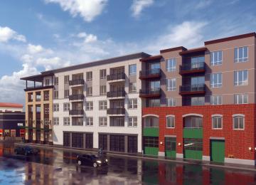 Mixed-use Edgeway apartments fully-framed at 16411 Bellflower Boulevard