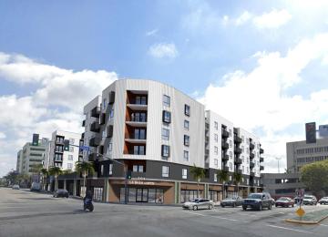 Mixed-use development fully-framed at 201 N. La Brea Avenue in Inglewood