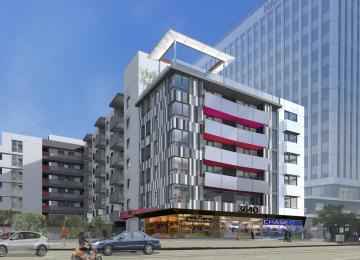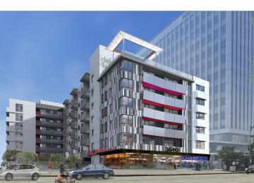Vacant lot on Wilshire Boulevard becoming apartments.