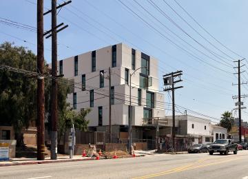 The four-story building is located one block east of Vermont/Santa Monica Station