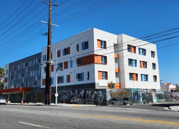 The 62-unit affordable housing complex sits a few blocks from Vermont/Santa Monica Station